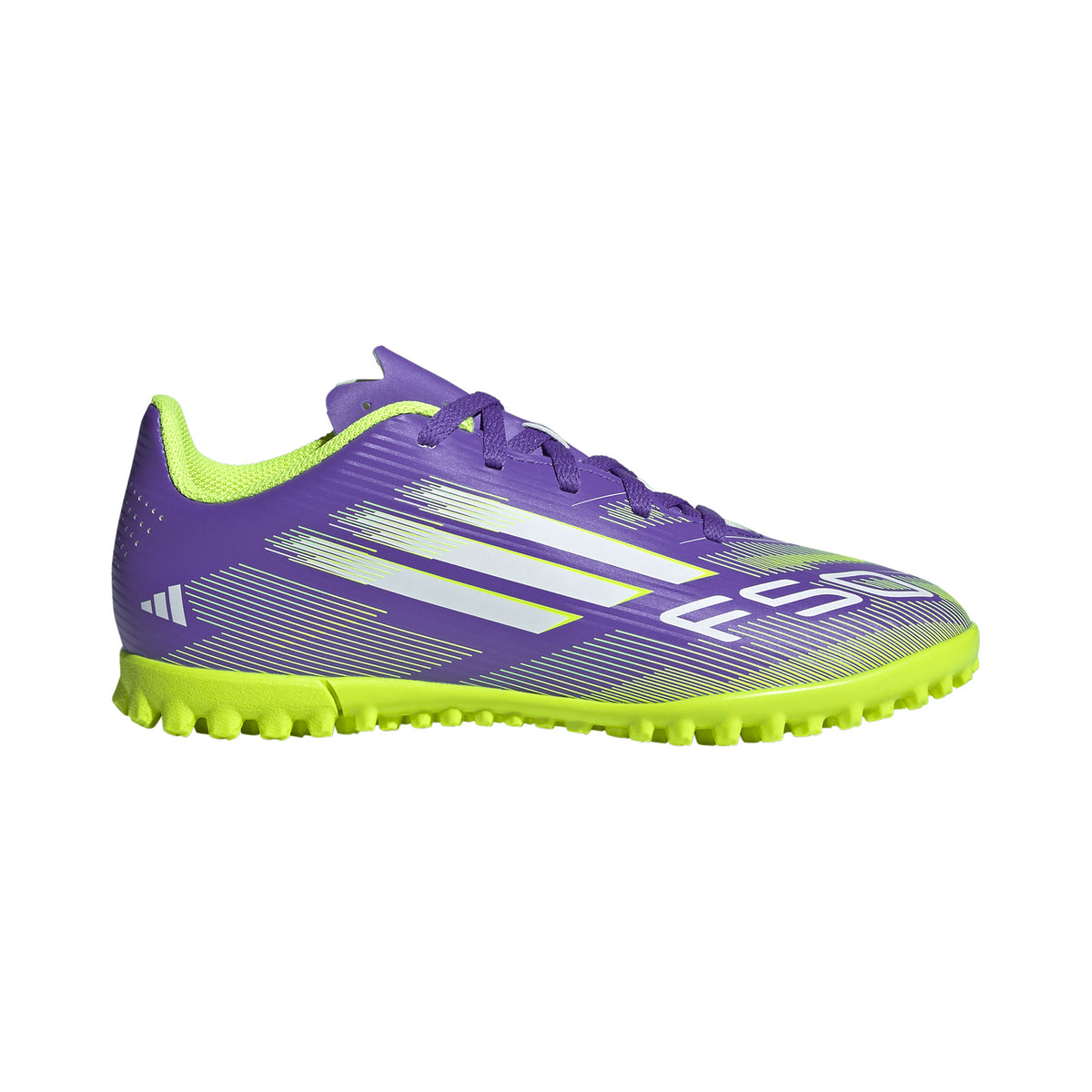 Trova la tua velocità per esprimere davvero te stesso in campo. Prova l’adrenalina con le scarpe da calcio F50 progettate per la velocità. Queste scarpe da calcio Club junior ti permettono di stare comodo/a in movimento grazie alla tomaia sintetica leggera e alla linguetta traforata. Se le giri, troverai una suola in gomma con tacchetti che favorisce la velocità di gioco sull'erba sintetica.